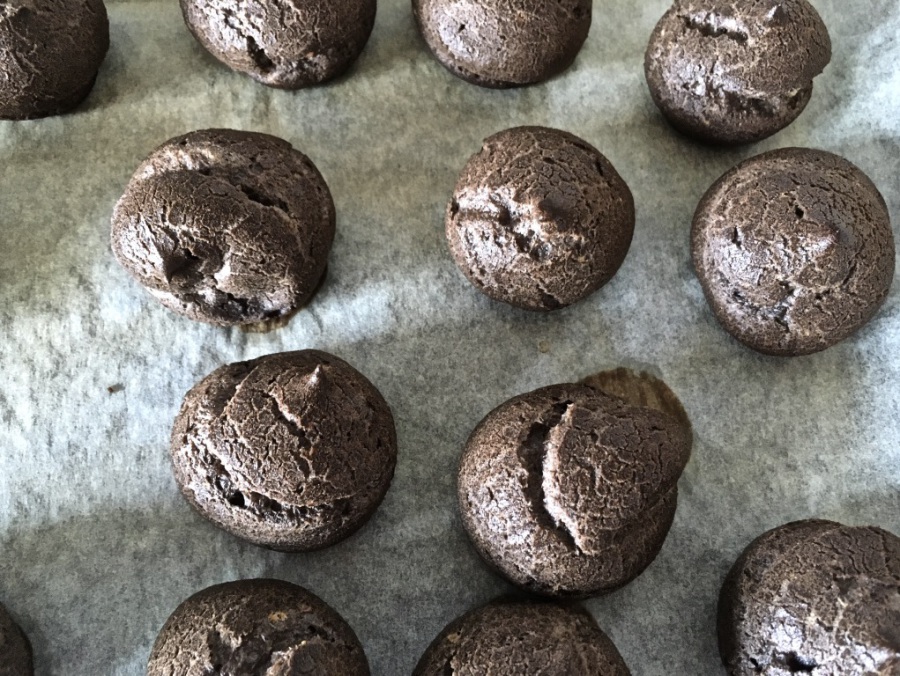 Die Windbeutel im vorgeheizten Backofen bei 200°C (Umluft) circa 15-20 Minuten backen, bis sie schön aufgegangen und idealerweise innen drin nun hohl sind.