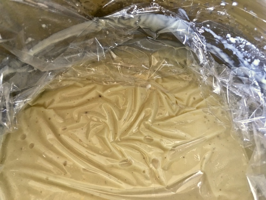 die Oberfläche mit Frischhaltefolie bedecken, damit sich keine Haut bilden kann. Den Oreo-Pudding auskühlen lassen.
